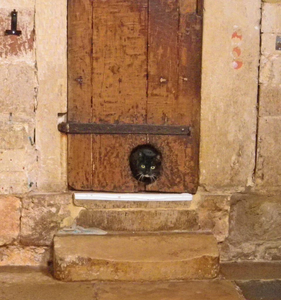 Fast forward to today, and kitties can still occasionally be seen using the medieval cat door — thankfully, the rodents are no longer an issue that requires feline attention.