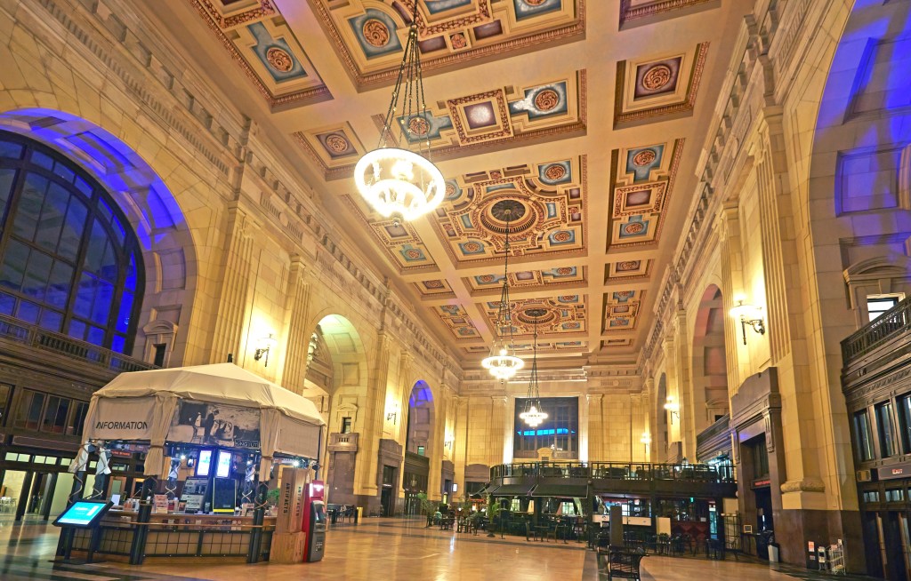 When Kansas City Union Station originally opened its doors in 1914, it was a magnificent testament to the Missouri city’s position as an economic powerhouse, comprising 10 levels and 900 rooms — including an elaborately decorated Grand Hall with an ornate fresco-adorned ceiling and three 3,500-pound chandeliers.