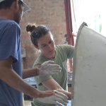 The double-layered ceramic nests are built by hand, a 72-hour process that requires a high level of attention to detail to ensure the raw materials are combined in the right ratios and layered in a specific sequence to maintain the strength and integrity of the end products. A pattern of ventilation holes designed to increase thermal venting is drilled into the top of the nests, per a Dallas Zoo blog post written by Kevin Graham, nest development project coordinator for the Association of Zoos and Aquariums and leader of the African Penguin Nest Project.