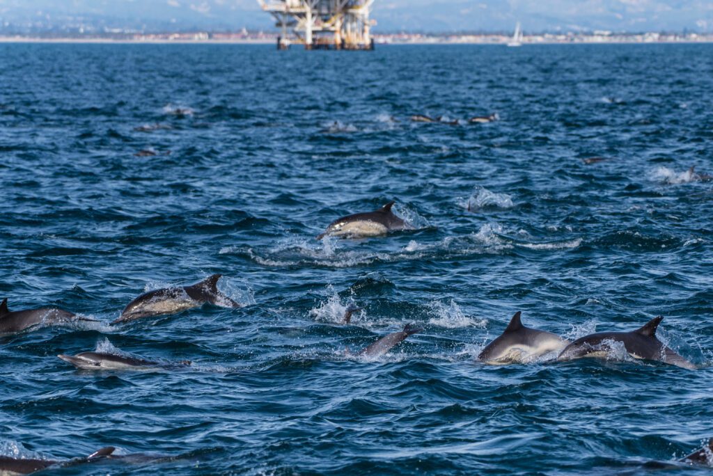 The platforms have been in place long enough to establish themselves as sorts of artificial reefs, as much a part of the ocean environment as its natural topography. Plankton, barnacles, rockfish, mussels, mackerel, and even mammals have made the massive metal frameworks their homes.