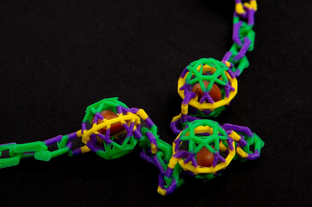 The team is also currently investigating how to create the beads on a variety of different printers, aiming to one day make the 3D print file open source, which will allow “anyone with access to a 3D printer to create their own beads,” Kato said. They envision that instead of Mardi Gras beads being sourced from countries like China, this new method will encourage local production.