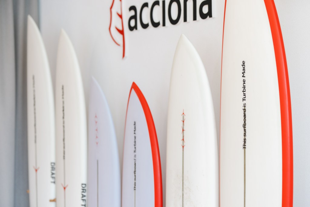 The boards are the result of a collab between renewable energy and infrastructure company Acciona and Australian pro surfer Josh Kerr’s brand Draft Surf, as part of an initiative exploring novel ways to transform decommissioned turbine blades into new products.
