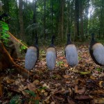 "Hadrien Lalagüe is rewarded for his patience with a perfect alignment of grey-winged trumpeters watching a boa slither past. Hadrien set up his camera trap by a track in the rainforest surrounding Guiana Space Center. He spent the next six months maintaining the camera kit against high humidity, plastic-munching ants and damage by poachers. This image was his reward. Trumpeters — named for their loud calls — spend most of their time foraging on the forest floor, eating ripe fruits, insects and the occasional small snake. The boa constrictor, more than three meters (9.8 feet) long, could have made a meal of them." Hadrien Lalagüe / Wildlife Photographer of the Year