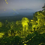 "Sriram Murali showcases a night sky and a forest illuminated with fireflies. Sriram combined fifty 19-second exposures to show the firefly flashes produced over 16 minutes in the forests near his hometown. The firefly flashes start at twilight, with just a few, before the frequency increases and they pulse in unison like a wave across the forest. Fireflies, which are in fact beetles, are famous for attracting mates using bioluminescence. Darkness is a necessary ingredient in the success of this process. Light pollution affects many nocturnal creatures, but fireflies are especially susceptible." Sriram Murali / Wildlife Photographer of the Year