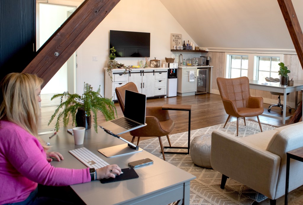 So she set out to create it herself. Enter: The Haven Collection, a unique, family-focused concept that’s helping reshape the way American society approaches childcare for working parents. Each Haven location features a fully licensed daycare facility, a coworking space, and a gym — all in one building. There are three locations across Rhode Island, where Riley lives, and New Jersey; the first opened in 2019 and the third in 2022. A franchise program was also recently launched, which means that more locations may soon start popping up as well.