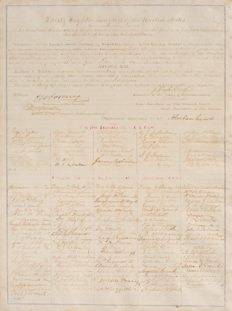 The 13th Amendment copy on offer is among only 15 recorded manuscript copies signed by Lincoln, and one of just nine with his signature alongside those of the senators and congressmen who passed it for ratification by the states. Of these, only four remain in private hands, with this example bearing the most signatures of supporting legislators — an extraordinary 96%.