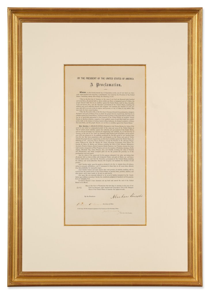 According to Sotheby’s, the documents are considered the most valuable copies of their kind ever to reach auction. Their appearance together at the event commemorates a pivotal moment in the nation’s history, as well as Lincoln’s commitment to ending slavery — an act he considered his greatest achievement as president.