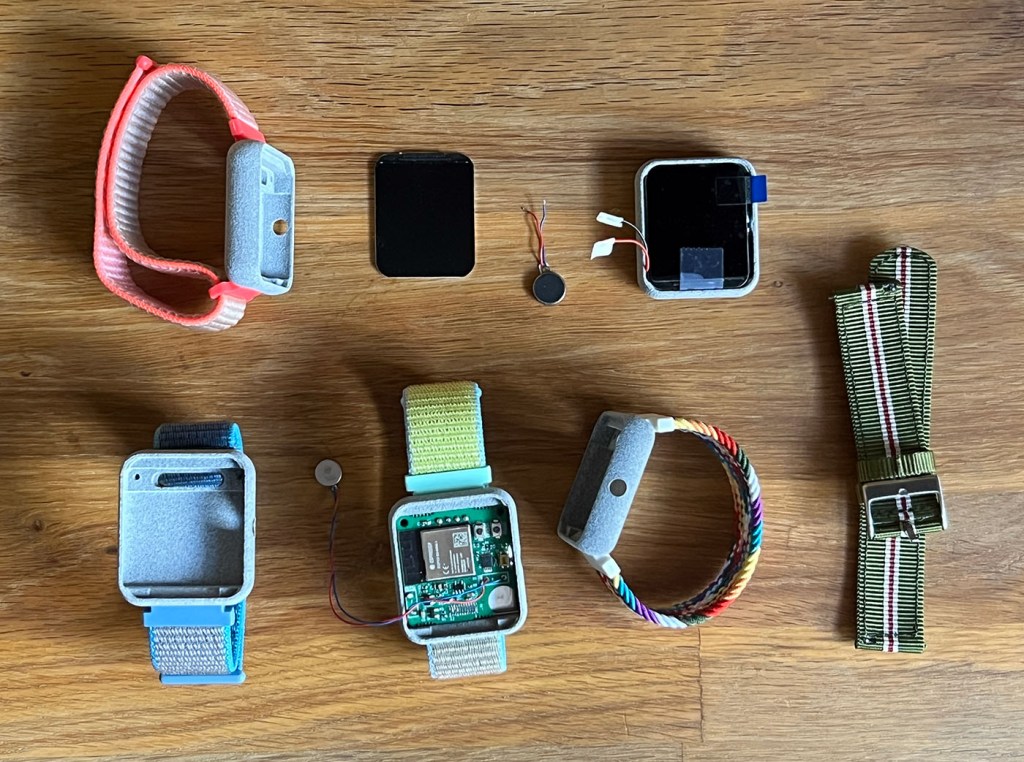Childs had a few goals going into the project: The device had to be simple (“no bells and whistles,” he wrote) yet able to pass for an actual consumer smartwatch; it had to stand up to light rain, mud, and playground/sports field activity; and it had to deliver reliable data using haptic feedback. He also wanted the display, where his son would be checking his data, to not feel clinical, and ideally to have some kind of gamified element.